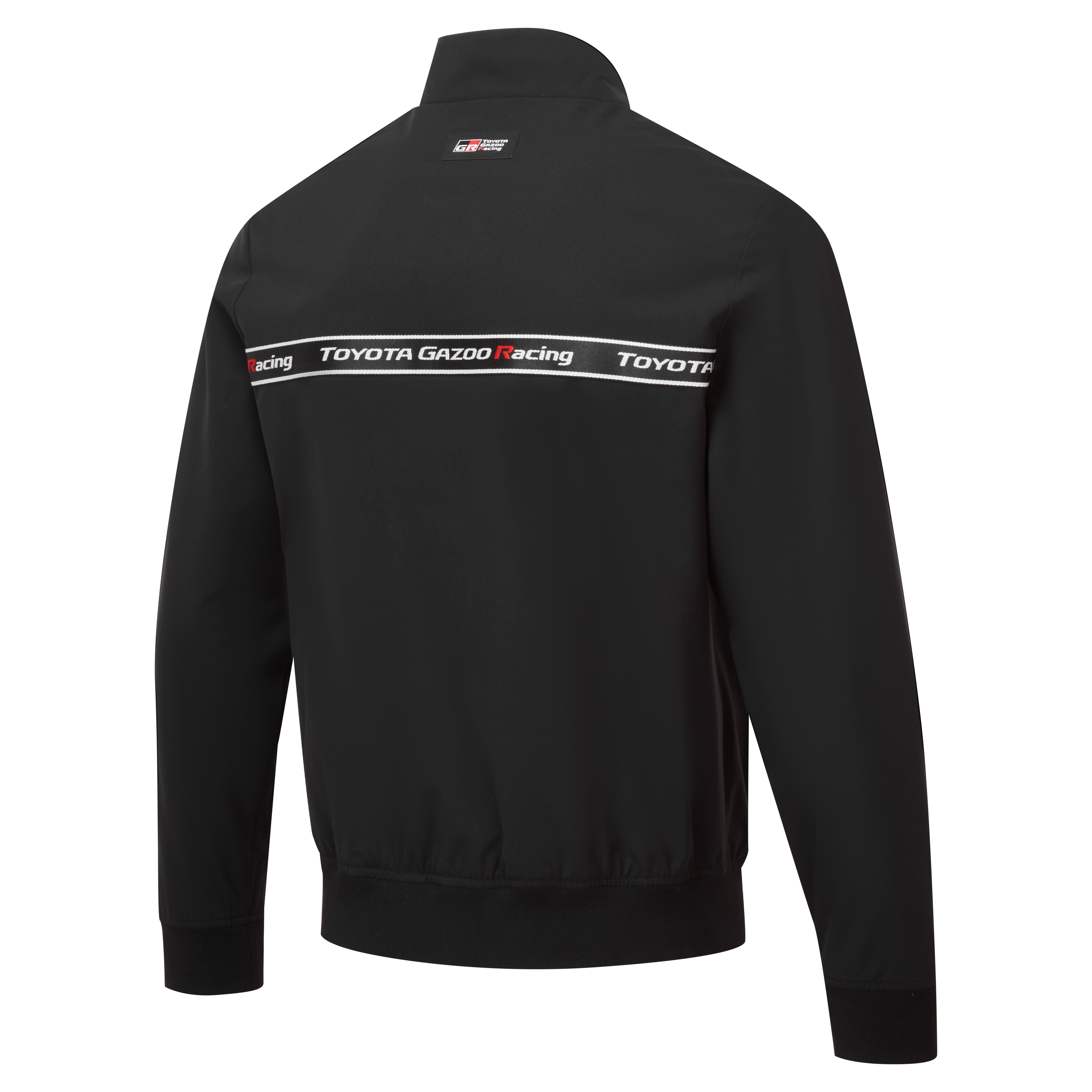 Presenting the TOYOTA GR Bomber Jacket, the most robust offering in our lineup. This product features a weather-resistant body, complemented by two zipped hand pockets for practicality. It ensures comfort with cuffed wrists and hem and is embellished with TGR-branded zip pulls, a prominent GR logo on the front, and a subtler version on the back. Additional attributes include a two-button chin guard for extra protection, taped zips for durability, and TGR brand tape for authenticity. A truly fashionable addition to any TOYOTA GR wardrobe.