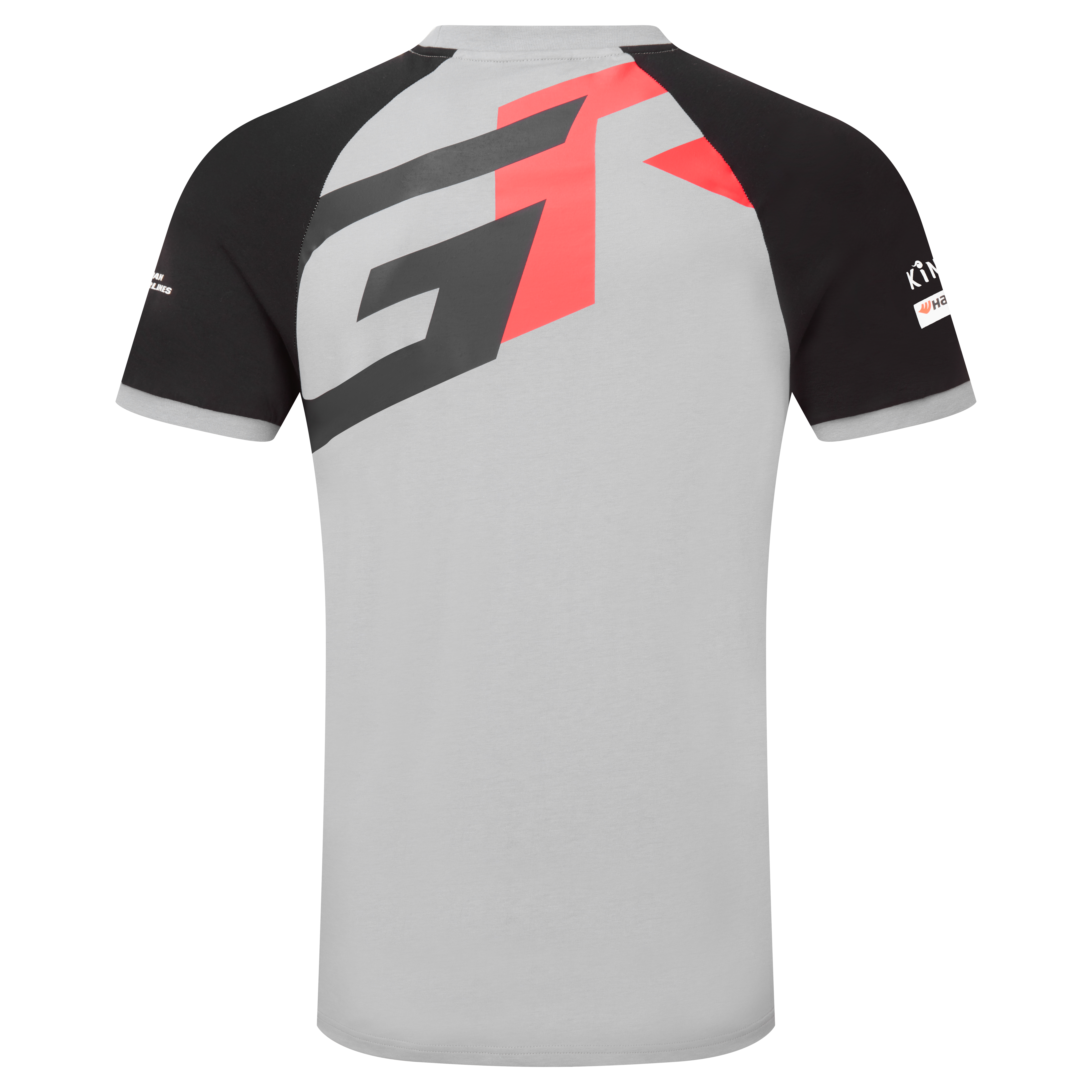 A switch from black to silver for the summer rallies, get the all-new TOYOTA GAZOO Racing Team Silver T-Shirt. Featuring the iconic GR print on both sides and accented with black shoulders and raglan sleeves against a silver torso, this t-shirt is a visual representation of team spirit. Displaying the official 2025 team and sponsor logos, you'll feel part of the GAZOO Racing family. The 100% cotton construction provides exceptional softness and breathability, while the ribbed collar ensures a comfortable fit.